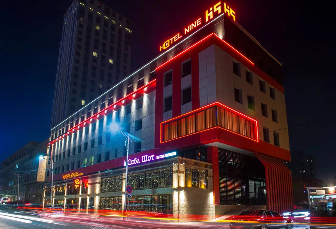 At Hotel Nine, we feature 57 modern comfortable rooms, one VIP meeting room, a full-service buffet breakfast (04:00 - 10:00AM, June-September), Modern Nomads restaurant, Double-Shot cocktail lounge, and a close by fitness studio (extra charge) designed for both business and leisure travelers.